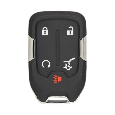Your Acadia uses a smart key, which is a plastic housing with 5 buttons on the face, a CR2032 battery inside powering the remote functions, and either an HU100 blade that folds into the housing or sits inside as an emergency backup. There's also a transponder chip in the fob that communicates with the car's body control module every time you try to start it.